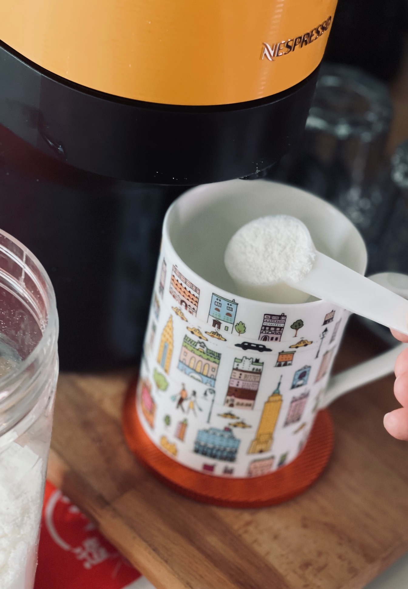Personally, I take it with my breakfast, either by adding a scoop in my coffee, or stirring it into my granola mix, but you can take it at any time of the day with any food or drink. It really is tasteless and odourless as the ads claim so it’s quite easy to consume.